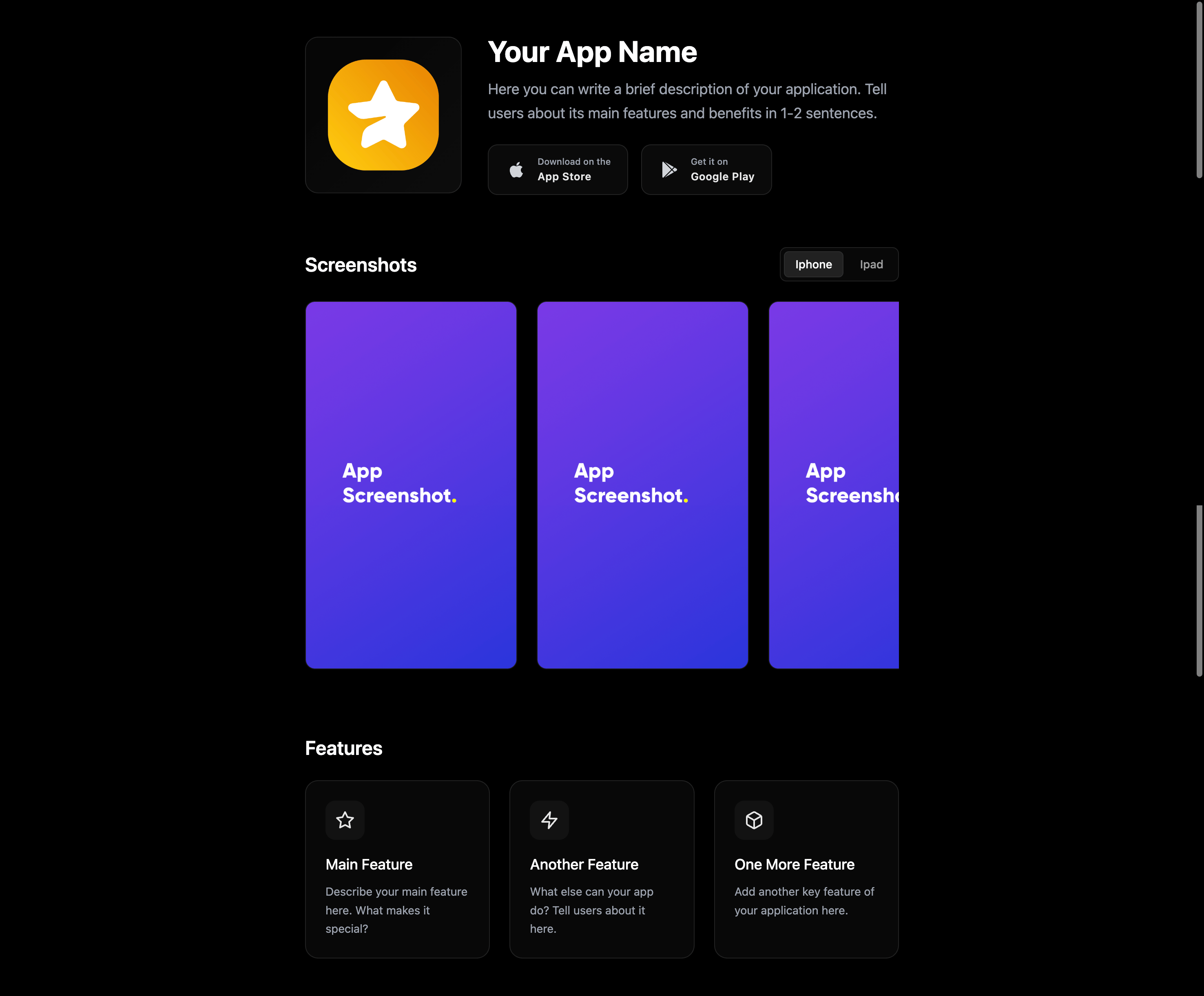Minimalistic mobile app landing page